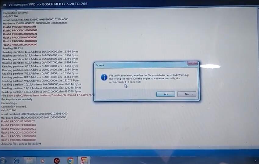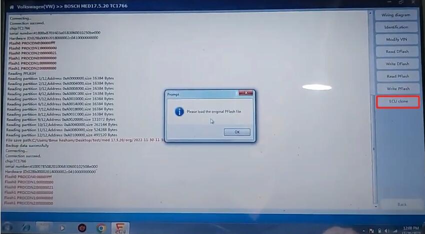 Load the original PFLASH file to write into the new MED17.5.20 ECU
