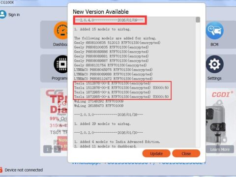 The newest software version 2.0.3.0 for CGDI CG100X Programmer is available now. It added 29 models incl. Benz, OPEL, and…