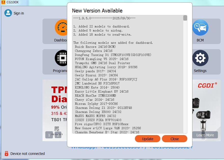 CGDI CG100X Programmer released the new software V1.9.5.0 on Sept.30, 2025.