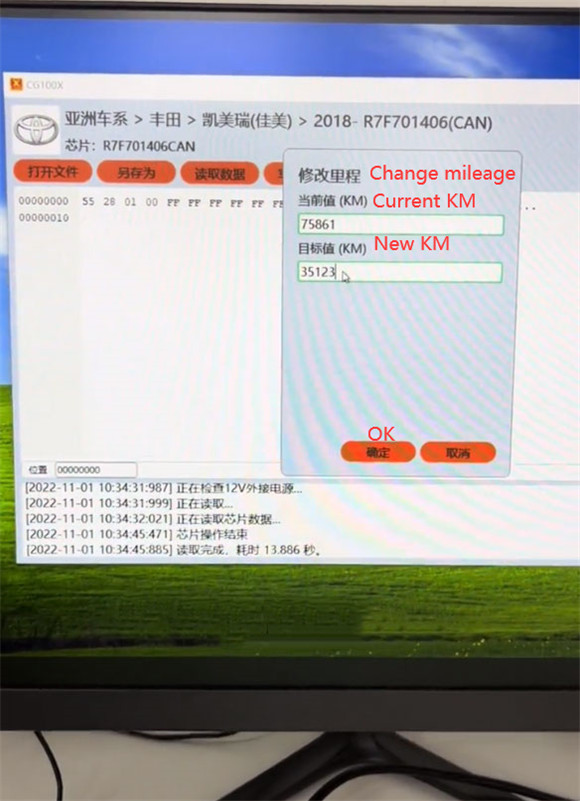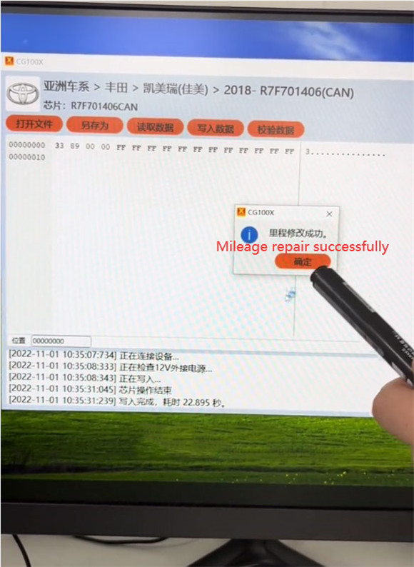 Result: CGDI CG100X with 35X- CAN Adapter repair mileage on 2019 Toyota Camry perfectly.