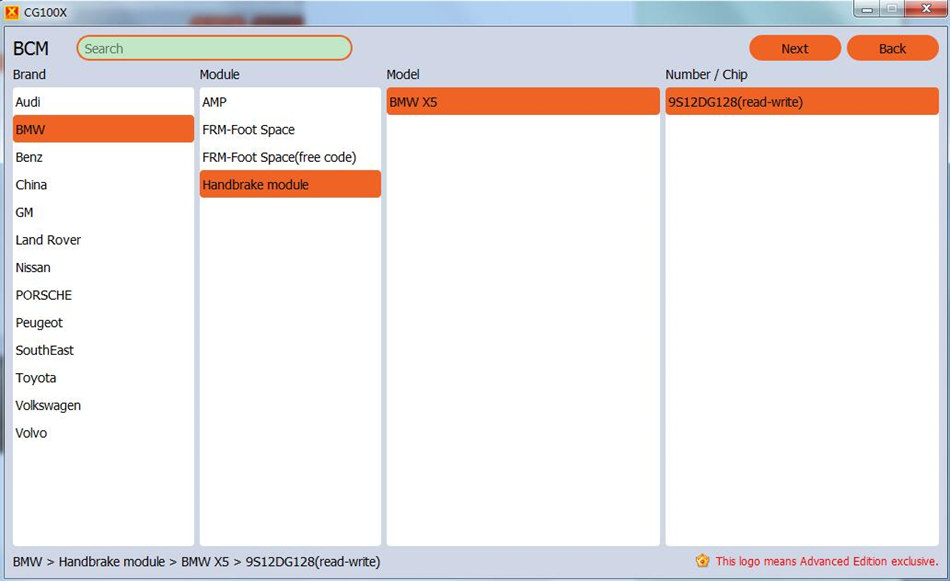 How to use CGDI CG100X to read data on BMW X5/X6 Handbrake Module (9S12DG128)?
