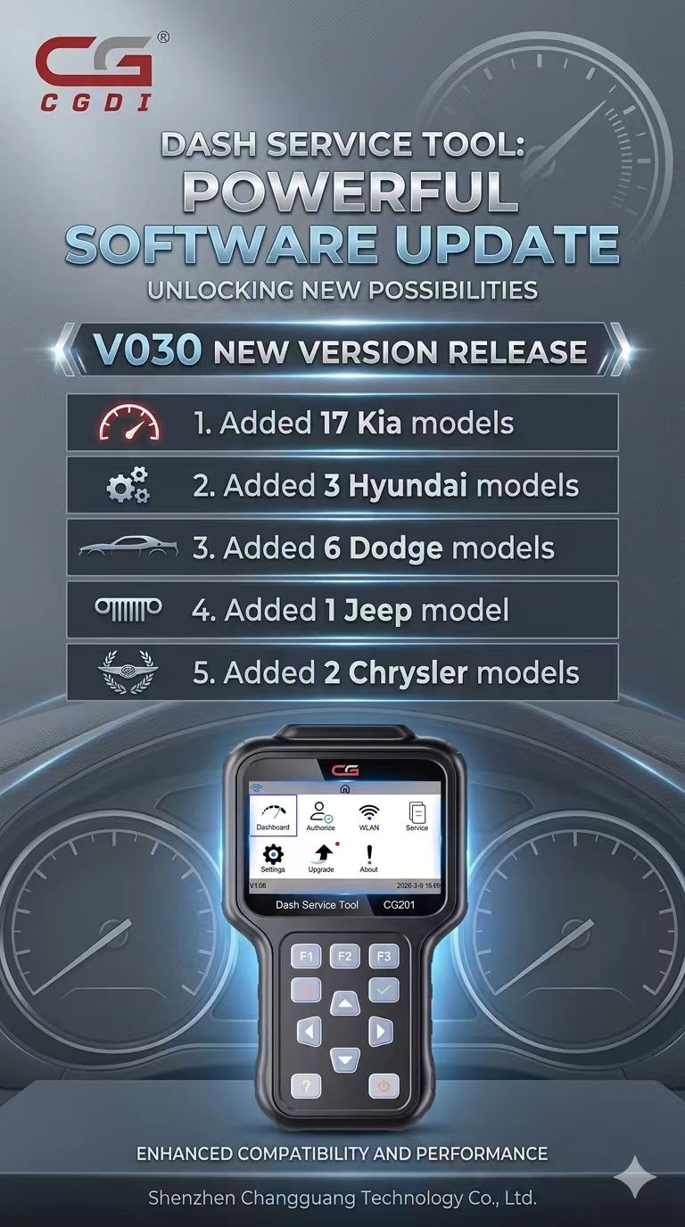 CGDI CG201 V030 software update, delivering a major boost in compatibility, performance, and overall user experience. This latest version expands support for multiple vehicle brands, making the tool even more versatile for automotive technicians and diagnostic professionals.