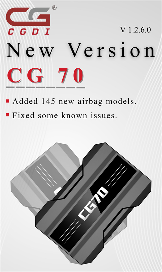 The newest software of CGDI CG70 Airbag Reset Tool version 1.2.6.0 is available now.