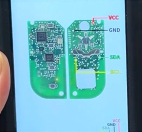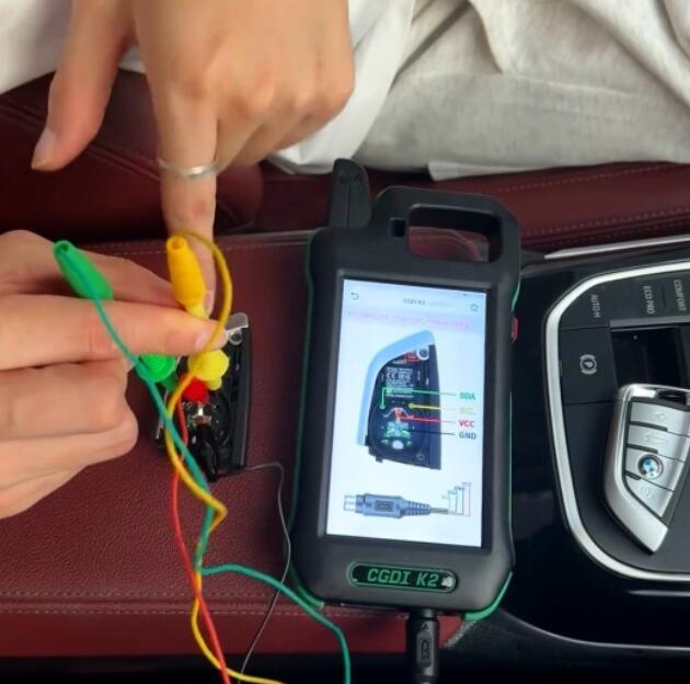 Remove the shell of the original key and connect it to CGDI K2 tool using the remote generation cable.