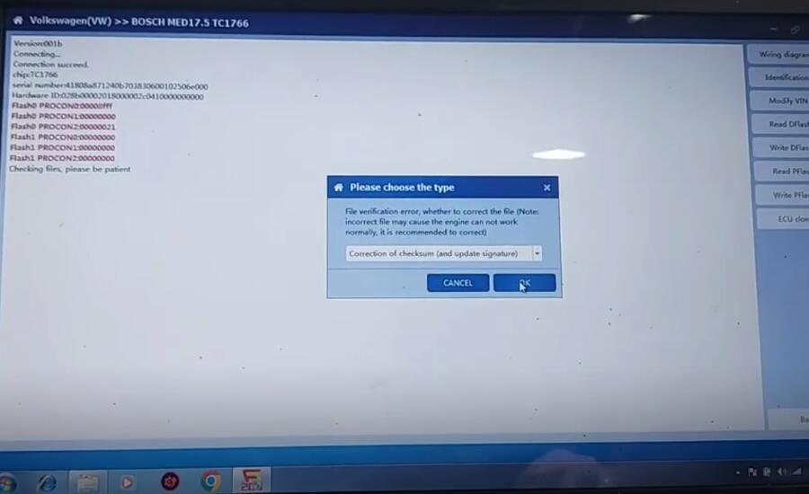 Follow the prompt to select the PFlash IMMO file (checksum is not ok)