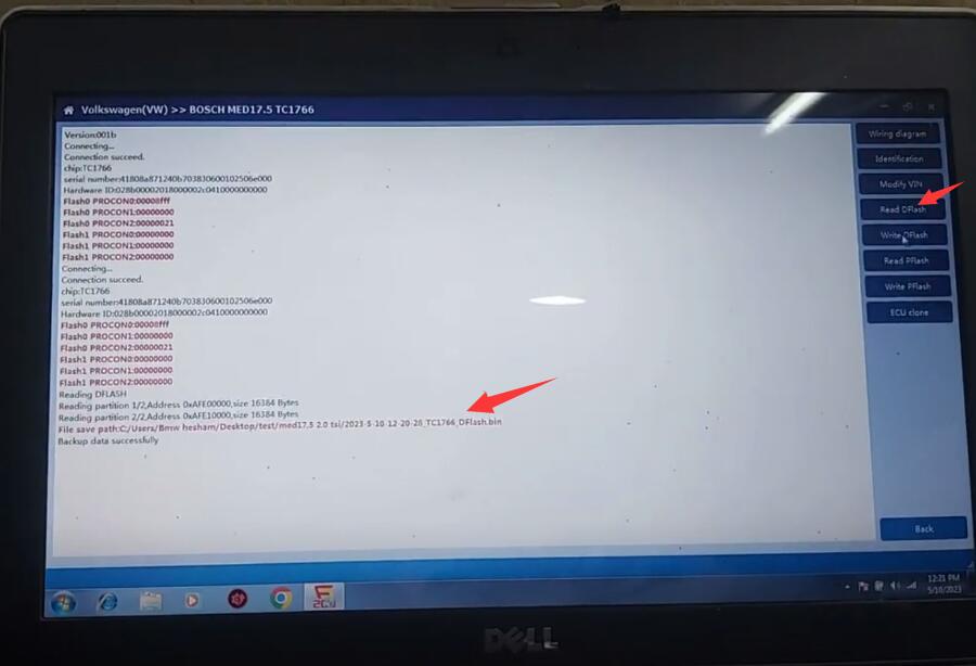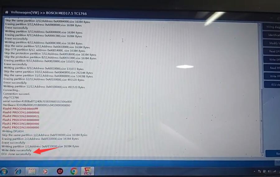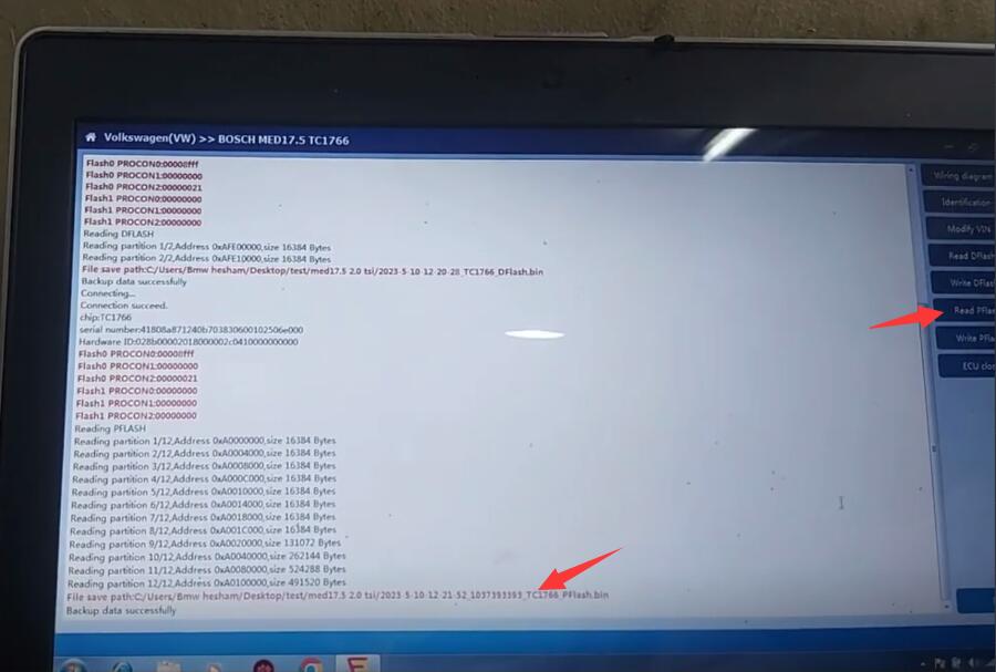Identify the ECU chip info first, and start to read DFlash and PFlash in sequence, save both data after reading.