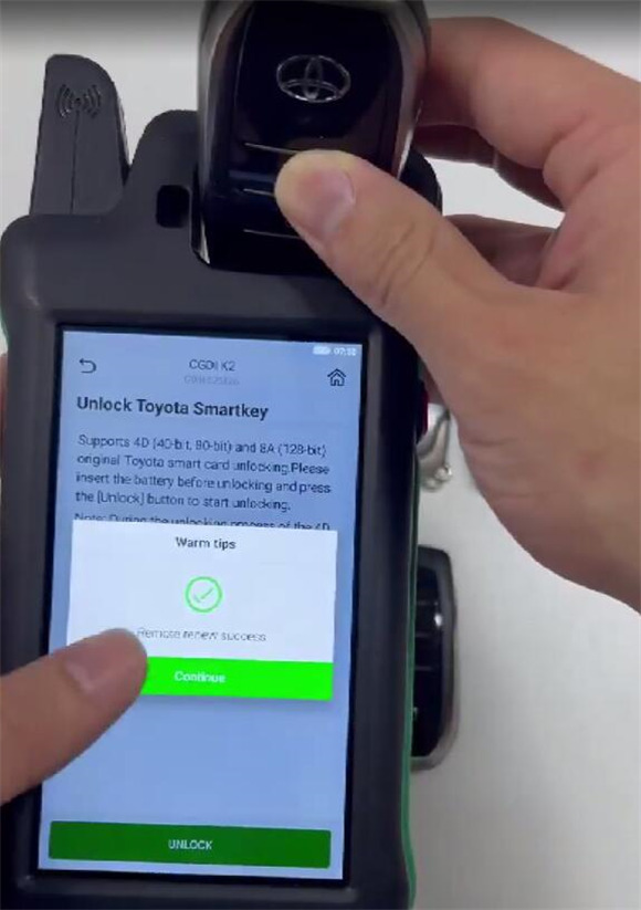 CGDI K2 Smart Key Tool has added support for unlocking original Toyota smart keys, including 4D (40-bit and 80-bit) and 8A (128-bit) models. The process is quick and straightforward—perfect for locksmiths and automotive technicians.