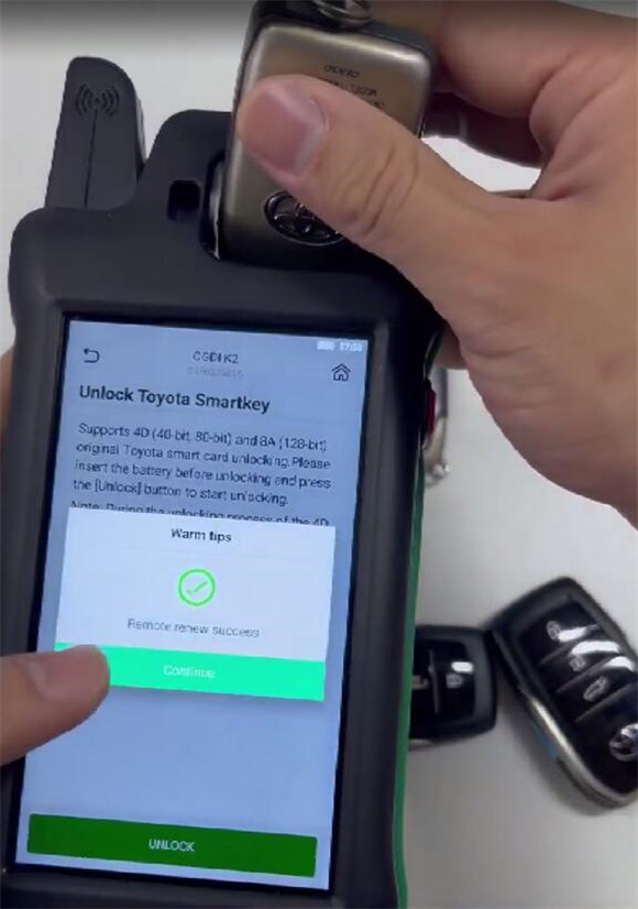 - During the unlocking process of the 4Doriginal Toyota smart card, the LED will flash and prompt that the unlocking is successful, otherwise please try again.