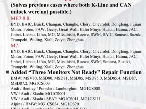 CG FC200 ECU Programmer released the new software V1.2.9.1 on June 9th, 2025. It added BMW MSD81, MSV90, and more…